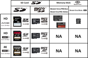 - įrašo „Full HD“, tačiau jo glaudinimo santykis didesnis nei HDV; naudoja glaudinimo metodą, vadinamą MPEG-4/H.264;